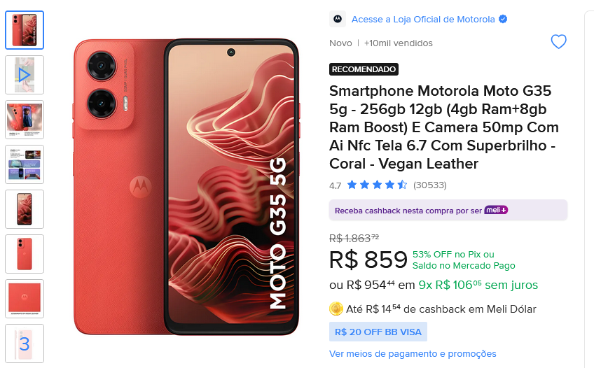 [Melhor Opção] Smartphone Motorola Moto G35 5g – 256gb 12gb (4gb Ram+8gb Ram Boost) E Camera 50mp Com Ai Nfc Tela 6.7 Com Superbrilho – Coral – Vegan Leather